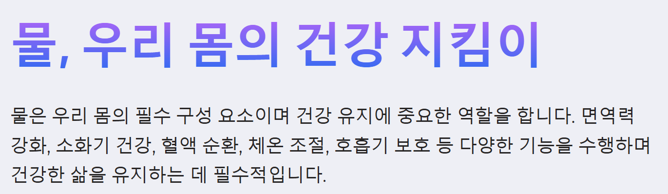 - 독소 배출: 물은 신체 내에 축적된 노폐물과 독소를 땀, 소변 등을 통해 배출하여 몸을 정화하고 면역력을 높입니다.