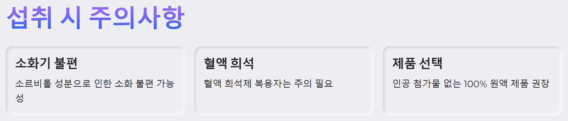 - 특정 질환 및 약물 복용 시 주의: 타트체리에 함유된 케르세틴 성분은 혈액을 묽게 만드는 작용을 할 수 있습니다. 따라서 혈액 희석제를 복용하고 있는 분들은 타트체리 섭취를 피하거나, 전문의와 상담 후 섭취 여부를 결정해야 합니다.