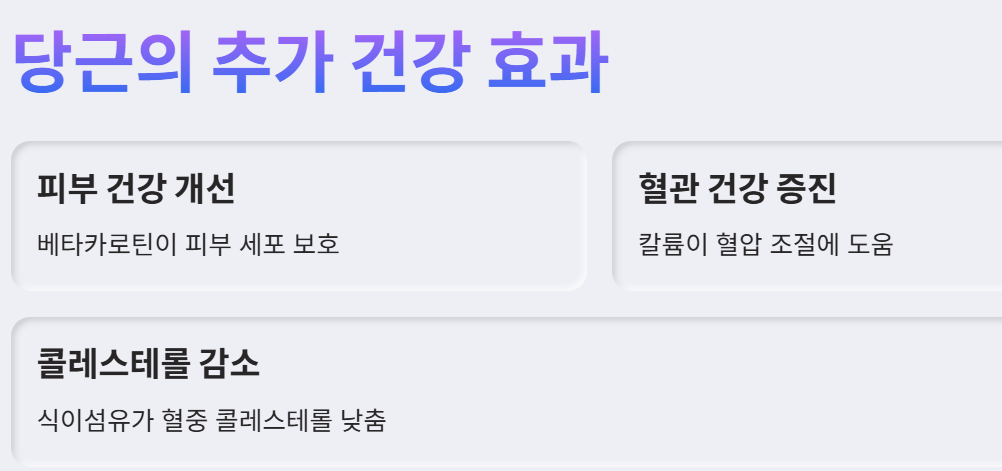 - 항산화 작용: 당근에는 베타카로틴 외에도 다양한 항산화 성분이 풍부하게 함유되어 있습니다. 이러한 항산화 성분들은 우리 몸의 세포를 손상시키는 활성산소를 제거하여 노화 방지 및 각종 만성 질환 예방에 도움을 줄 수 있습니다.