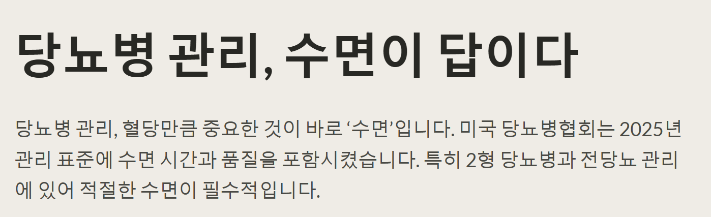 당뇨병, 단순히 혈당만 조절하면 건강해질까요? 정답은 ‘아니오’입니다. 혈당 관리만큼이나 중요한 것이 바로 ‘수면’입니다. 믿기지 않으시죠? 미국 당뇨병협회에서도 잠의 중요성을 인정하고, 2025년판 당뇨병 관리 표준에 ‘수면 시간과 품질’을 관리 대상으로 명시했답니다. 특히 2형 당뇨병과 전당뇨에 매우 중요하다고 하니 이번 글을 통해 당뇨 관리에 필요한 적절한 수면시간에 대해 알아보세요.
