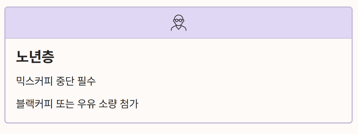 - 노년층: 당 함량이 높은 믹스커피 사용을 중단하고 블랙커피로 전환하거나 우유를 소량 첨가하는 방식으로 변경해야 합니다.