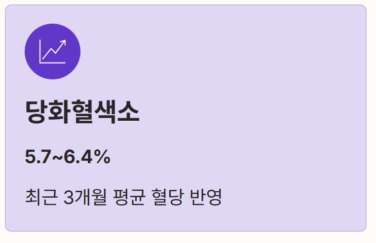 - 당화혈색소 지표: 최근 3개월간의 평균 혈당을 반영하는 당화혈색소 수치가 5.7~6.4% 범위에 있다면 전 단계에 해당합니다.