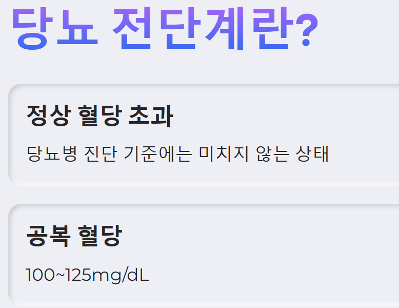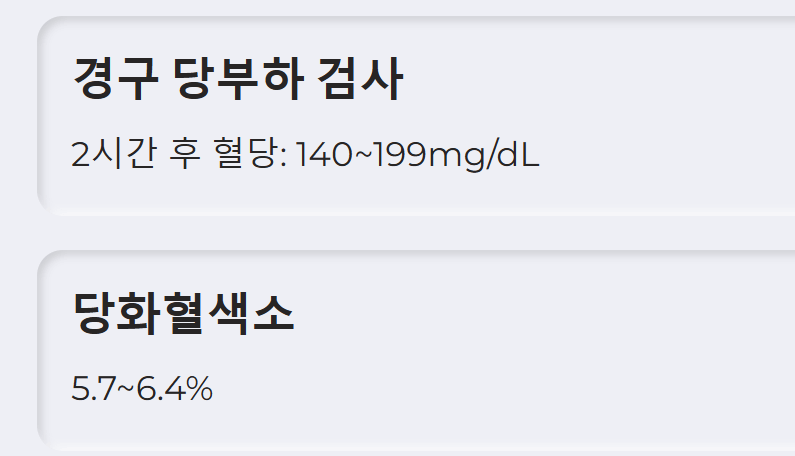 - 경구 당부하 검사 2시간 후 혈당: 140~199mg/dL