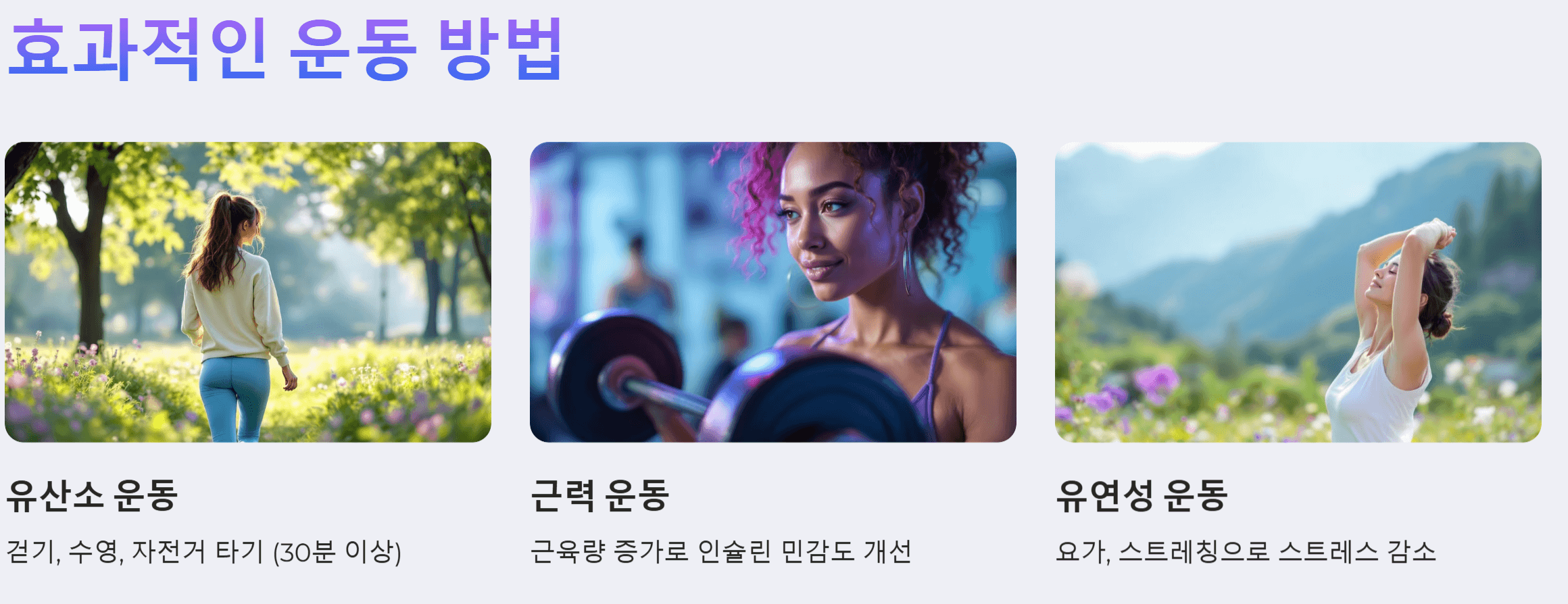 - 규칙적인 운동: 주 3회 이상, 하루 30분 이상 꾸준히 운동하는 것이 좋습니다. 유산소 운동과 근력 운동을 병행하면 혈당 조절에 더욱 효과적입니다.