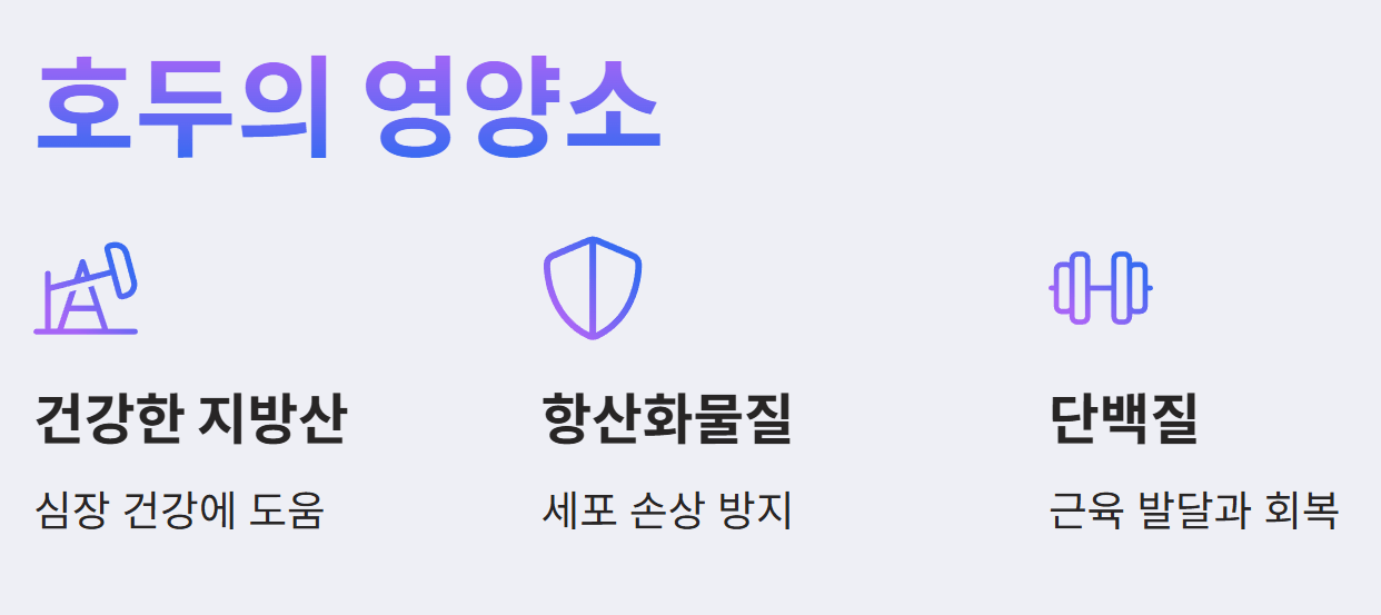 - 오메가-3 지방산: 호두는 뇌 건강에 중요한 오메가-3 지방산을 포함하고 있어, 뇌 세포의 건강을 유지하는 데 도움이 됩니다.