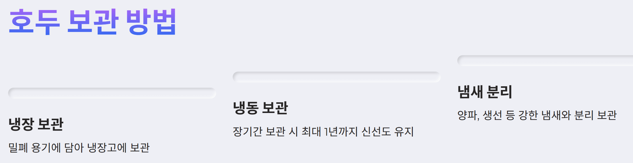 - 냉동 보관: 장기간 보관할 경우, 냉동 보관이 적합합니다. 냉동 보관 시 호두의 신선도를 최대 1년까지 유지할 수 있습니다.