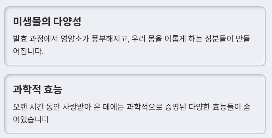 전통적인 발효식품인 된장과 김치는 단순히 맛있는 음식을 넘어, 우리 몸에 이로운 수많은 유익균을 품고 있는 건강의 보고입니다. 이들 식품이 오랜 시간 동안 사랑받아 온 데에는 과학적으로 증명된 다양한 효능들이 숨어있습니다. 미생물의 신비로운 작용을 통해 영양소가 풍부해지고, 우리 몸을 이롭게 하는 성분들이 만들어지는 과정을 이해하는 것은 이들 식품을 더욱 가치 있게 만드는 일입니다.