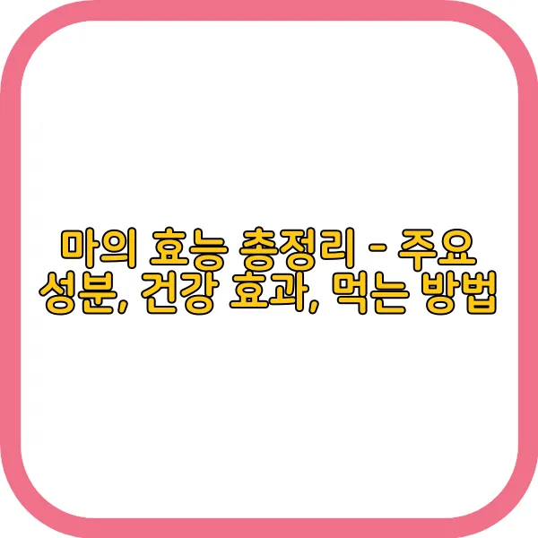 마는 오랜 역사를 지닌 식물로, 마의 효능은 현대의학에서도 주목받고 있습니다. 다양한 영양 성분으로 가득한 마는 우리의 건강에 긍정적인 영향을 미치며. 특히 마를 다양한 방법으로 섭취함으로써 건강에 도움을 줄 수 있습니다. 이번에는 마의 주요 성분과 먹는 방법 등에 대해 알아보겠습니다.