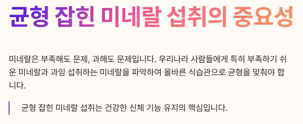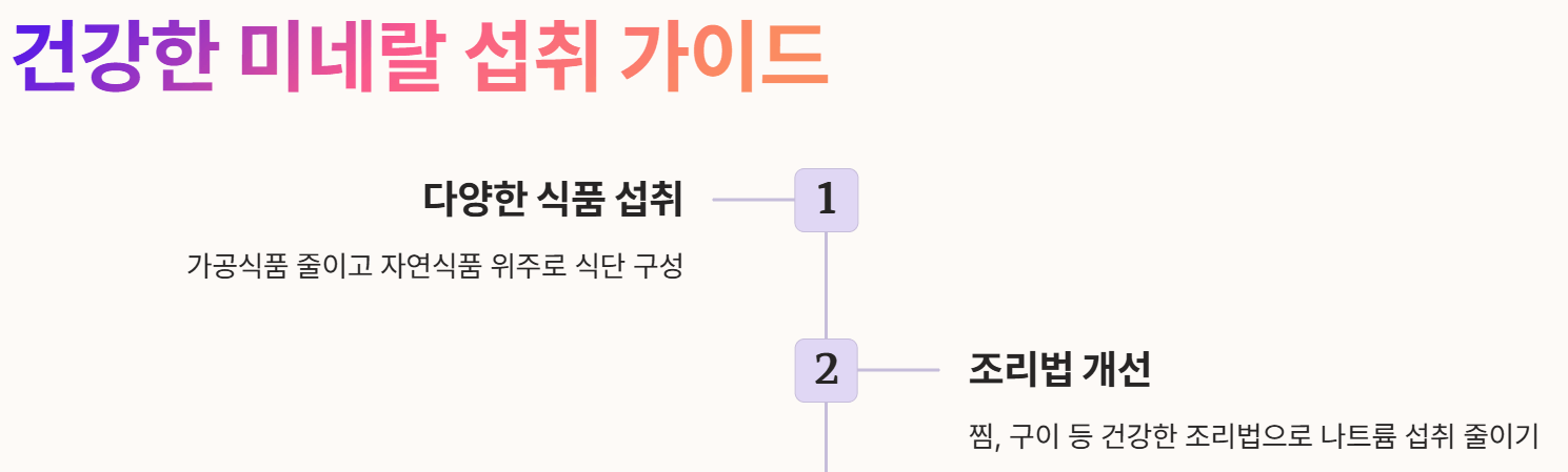 우리 몸에 꼭 필요한 미네랄이지만, 부족해도 문제고 과해도 문제입니다. 우리나라 사람들에게 특히 부족하기 쉬운 미네랄과 과잉 섭취하는 경향이 있는 미네랄을 알아보고, 올바른 식습관을 통해 균형을 맞추는 방법을 살펴보겠습니다. 균형 잡힌 미네랄 섭취는 건강한 신체 기능을 유지하는 데 핵심적인 역할을 합니다.
