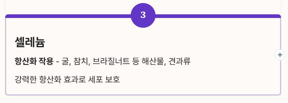 - 셀레늄: 항산화 작용을 하는 중요한 미네랄로, 해산물, 견과류 등에 풍부하게 들어 있습니다. 굴, 참치, 브라질너트 등을 통해 충분히 섭취하는 것이 좋습니다.