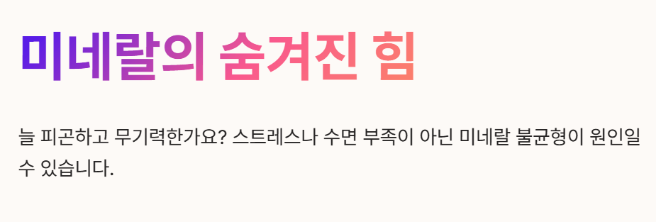혹시 늘 피곤하고 기운이 없거나, 이유 없이 무기력하거나, 자주 신경이 예민해지지는 않나요? 우리는 보통 이런 증상이 나타나면 스트레스나 수면 부족을 먼저 떠올리곤 합니다. 하지만 눈에 잘 보이지 않는 미량 영양소인 미네랄의 불균형 때문에 이런 현상이 나타날 수도 있다는 사실을 알고 계셨나요? 탄수화물, 단백질, 지방처럼 우리 몸의 주된 구성 요소는 아니지만, 생명 유지에 필수적인 역할을 하는 미네랄. 이 작은 영양소의 힘과 건강한 섭취 방법을 함께 알아보겠습니다.