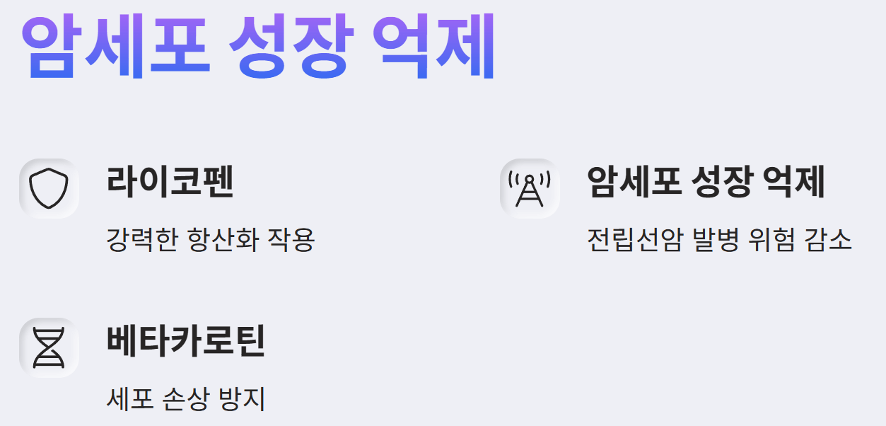 - 라이코펜: 토마토의 붉은 색소 성분인 라이코펜은 강력한 항산화 작용을 통해 체내 세포 손상을 억제하고, 암세포의 성장과 전이를 막는 데 기여할 수 있습니다. 실제로 전립선암 관련 연구에서는 토마토 섭취가 남성의 전립선암 발병 위험을 낮추는 연관성이 있는 것으로 나타났습니다.