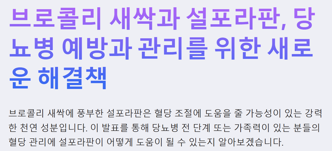 이러한 상황에서 브로콜리 새싹에 풍부한 설포라판이 당뇨병 전 단계의 혈당 수치 개선에 효과적이라는 연구 결과가 발표되어 주목받고 있습니다. 설포라판은 브로콜리, 양배추 등 십자화과 채소에 많이 함유된 성분으로, 항염·항암 효과가 뛰어난 것으로 알려져 있습니다.