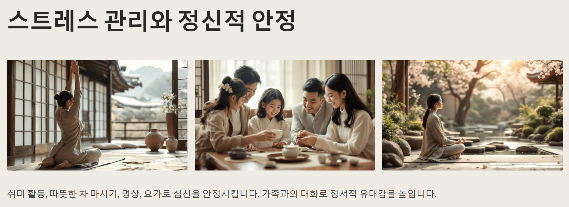- 가족과의 대화: 가족들과 이야기를 나누며 마음을 편안하게 하고 서로를 이해하는 시간을 가져보세요.
