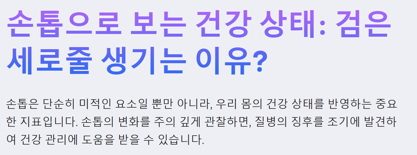 혹시 손톱이 예전 같지 않다고 느껴지시나요? 손톱은 단순히 미적인 요소뿐만 아니라 우리 몸의 건강 상태를 반영하는 중요한 지표가 될 수 있습니다. 손톱의 변화를 유심히 살펴보면 여러 질환들의 자가진단이 가능하기도 합니다 .이번에는 손톱으로 보는 건강상태와 검은 세로줄이 생기는 이유, 그리고 여러 손톱 건강을 지키는 관리법에 대해 살펴보겠습니다!