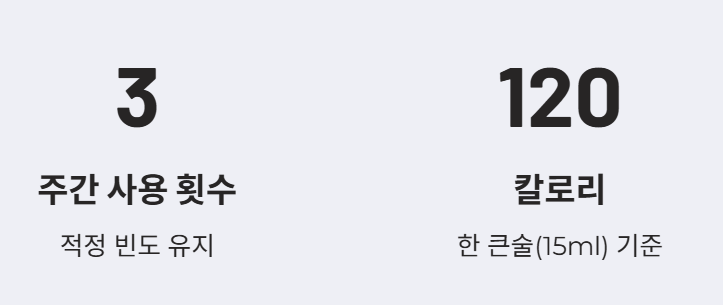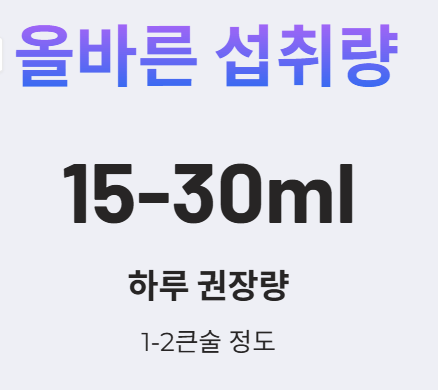 - 하루 1~2큰술(15~30ml) 정도의 적정량을 지키는 것이 좋습니다.