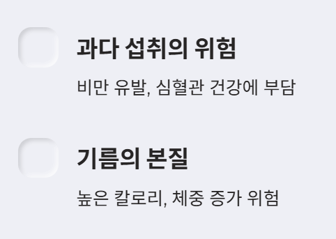 - 카놀라유, 해바라기씨유 등 식물성 기름