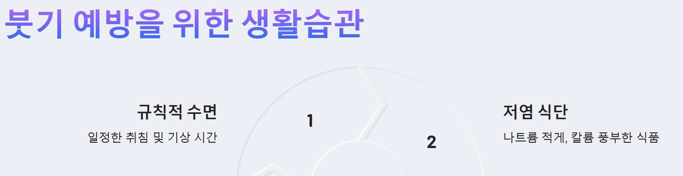 - 규칙적인 수면 습관: 충분한 수면은 신체 기능을 회복시키고 혈액순환을 원활하게 하여 붓기 예방에 도움을 줍니다. 매일 규칙적인 시간에 잠자리에 들고 충분한 수면을 취하세요. 특히, 잠들기 전 스마트폰 사용을 자제하고 따뜻한 물로 샤워하는 것이 숙면에 도움이 됩니다.