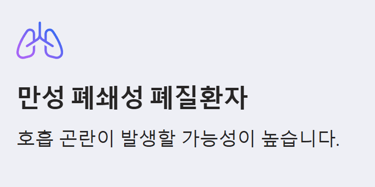 - 만성 폐쇄성 폐질환: 만성 폐쇄성 폐질환이 있는 환자는 온수 목욕이 호흡을 급격하게 변화시킬 수 있습니다.