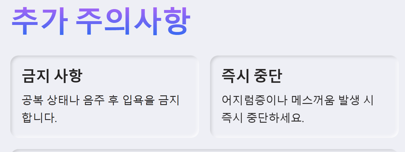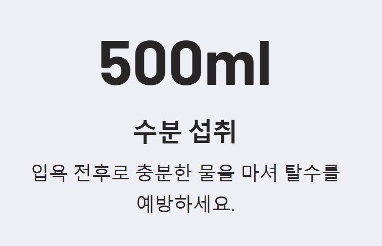 - 수분 섭취: 온수 목욕 전후로 충분한 물을 마셔 탈수를 예방해야 합니다.