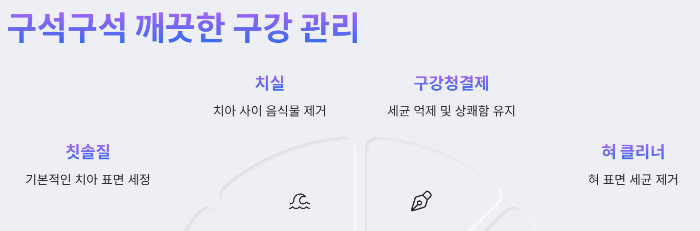 - 혀 닦기: 혀 안쪽에서 바깥쪽으로 부드럽게 혀를 닦아 세균과 음식물 찌꺼기를 제거합니다.