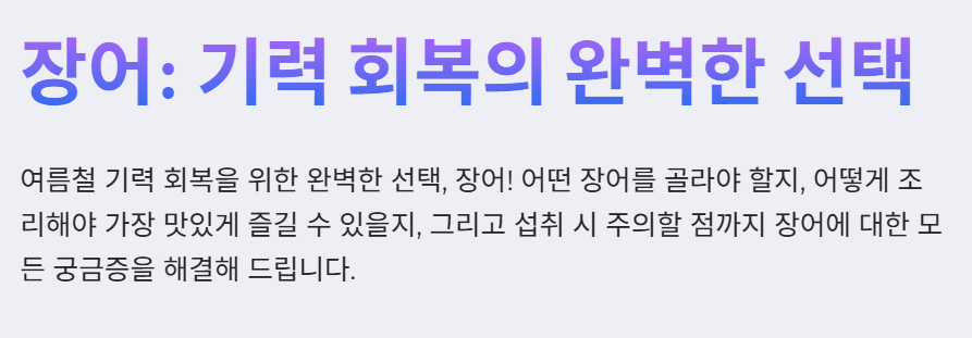 - 해산물 알레르기 유의: 장어에 함유된 트로포미오신이라는 단백질 성분은 일부 사람들에게 알레르기 반응을 유발할 수 있습니다. 기존에 해산물 알레르기가 있거나 아토피 체질, 면역체계가 예민한 사람이라면 장어 섭취를 피하고 삼계탕, 도가니탕 등 다른 육류 위주의 보양식으로 대체하는 것이 현명합니다.
