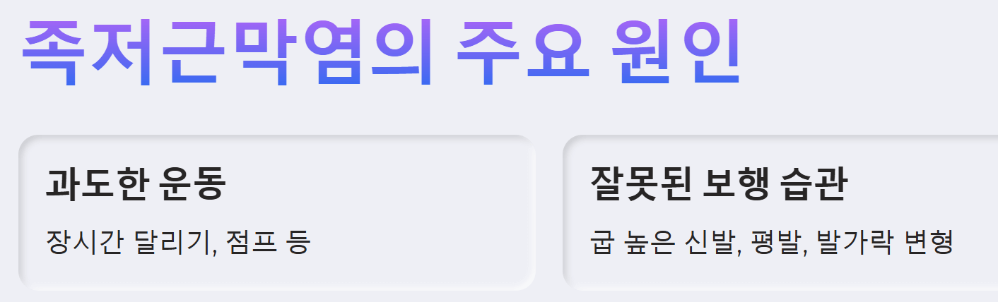 족저근막염은 발뒤꿈치부터 발가락까지 이어지는 족저근막이라는 부위에 염증이 생기는 질환입니다. 족저근막은 발의 아치를 유지하고 충격을 흡수하는 중요한 역할을 합니다. 하지만 과도한 운동이나 잘못된 보행 습관, 과체중 등으로 인해 족저근막에 무리한 힘이 가해지면 염증이 생기고 통증이 발생할 수 있습니다.