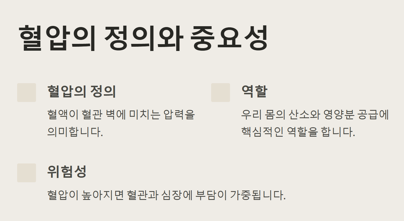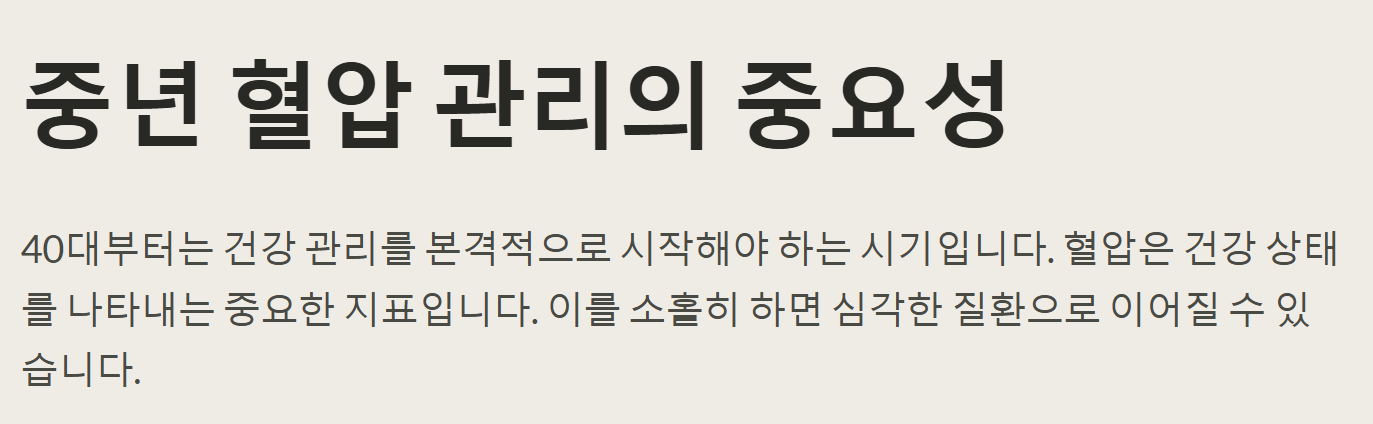 ※ 참고: 위 내용은 일반적인 정보 제공을 목적으로 작성되었으며, 개인의 건강 상태에 따라 적용 방법이 다를 수 있습니다. 혈압 관리에 대한 보다 자세한 정보는 전문가와 상담하시기 바랍니다.