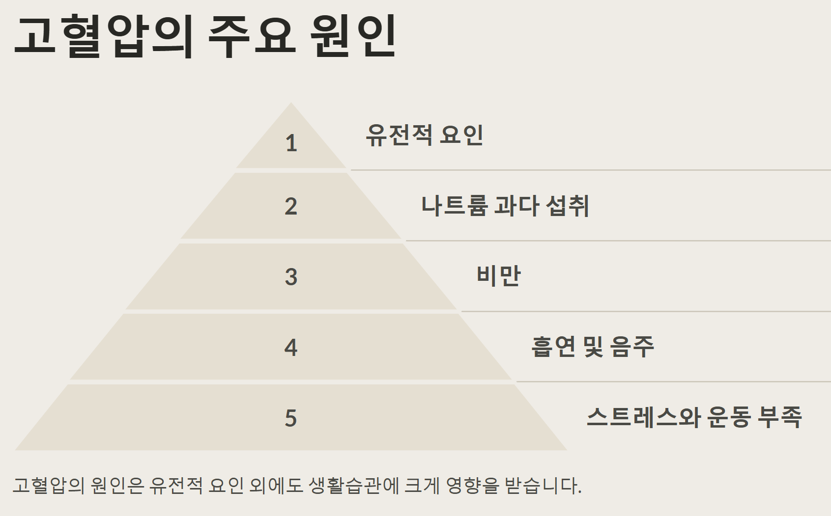 - 운동 부족: 규칙적인 운동은 혈압을 낮추는 데 도움이 됩니다.