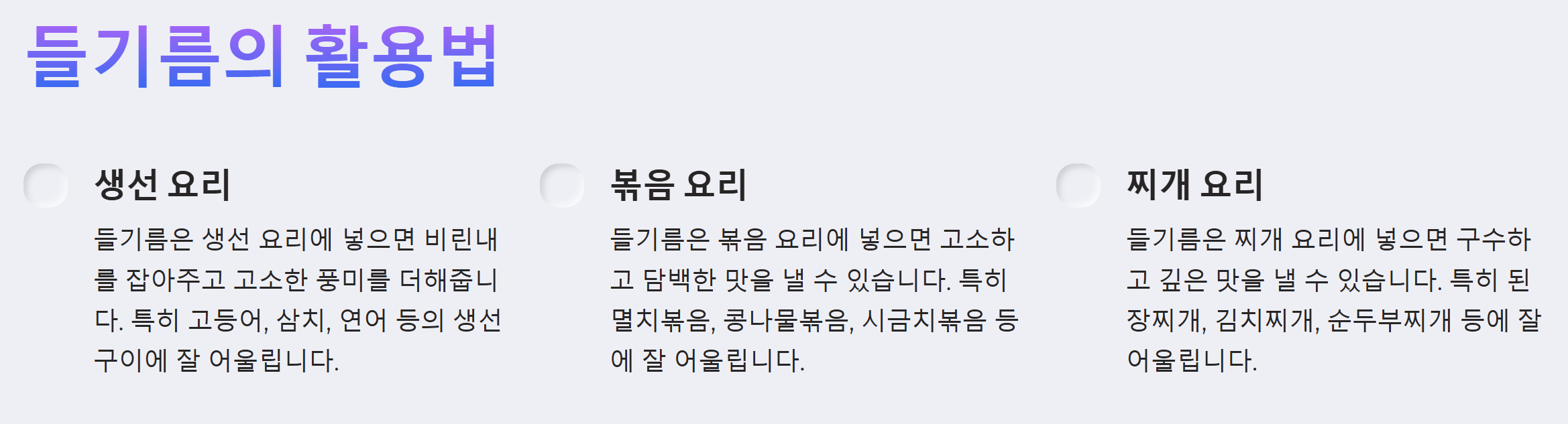 - 장기 보관: 들기름은 산화가 빠르게 진행되므로, 개봉 후에는 빠른 시일 내에 소비하는 것이 좋습니다.