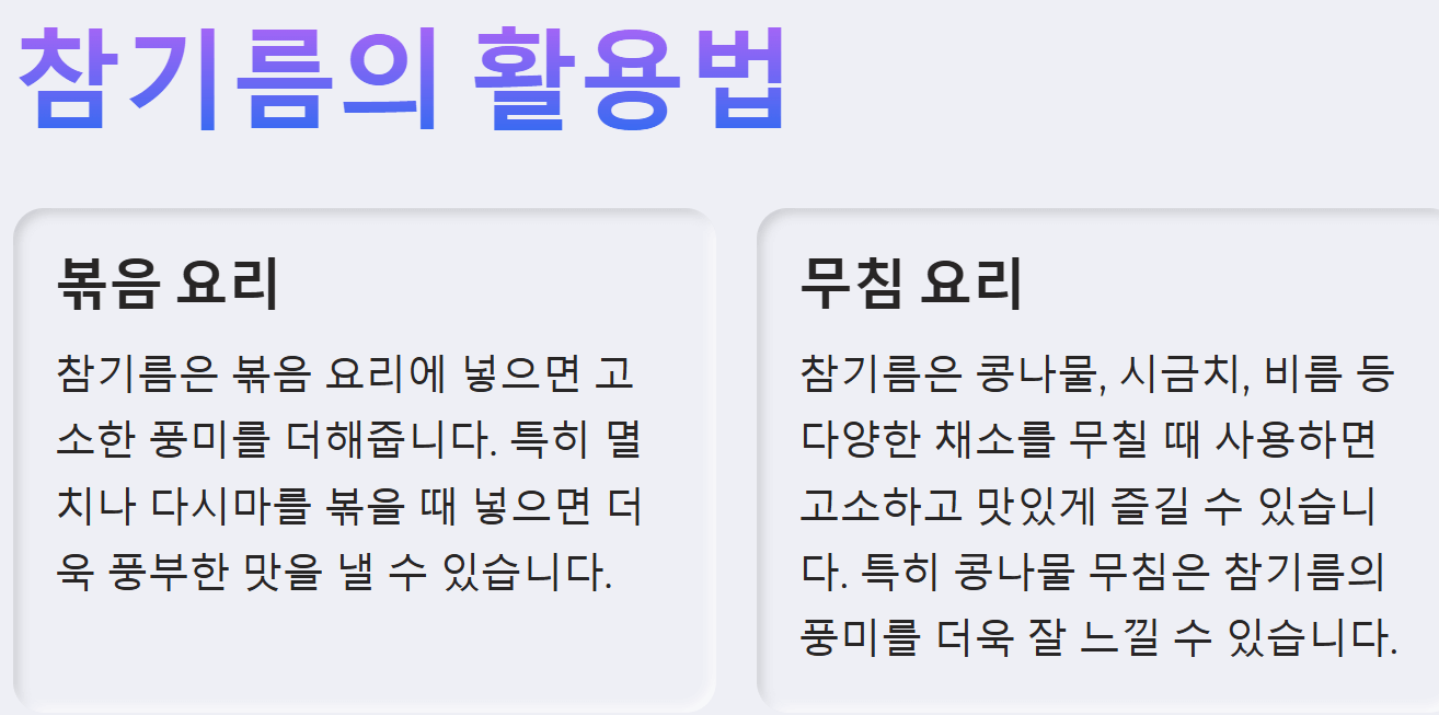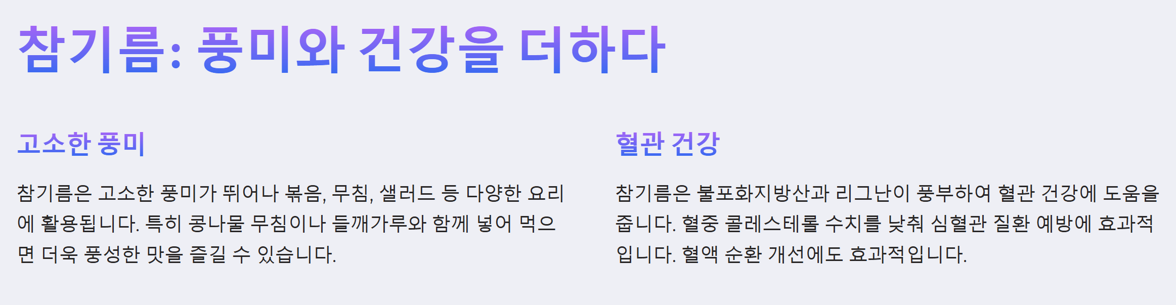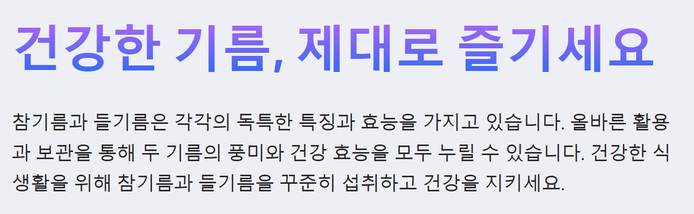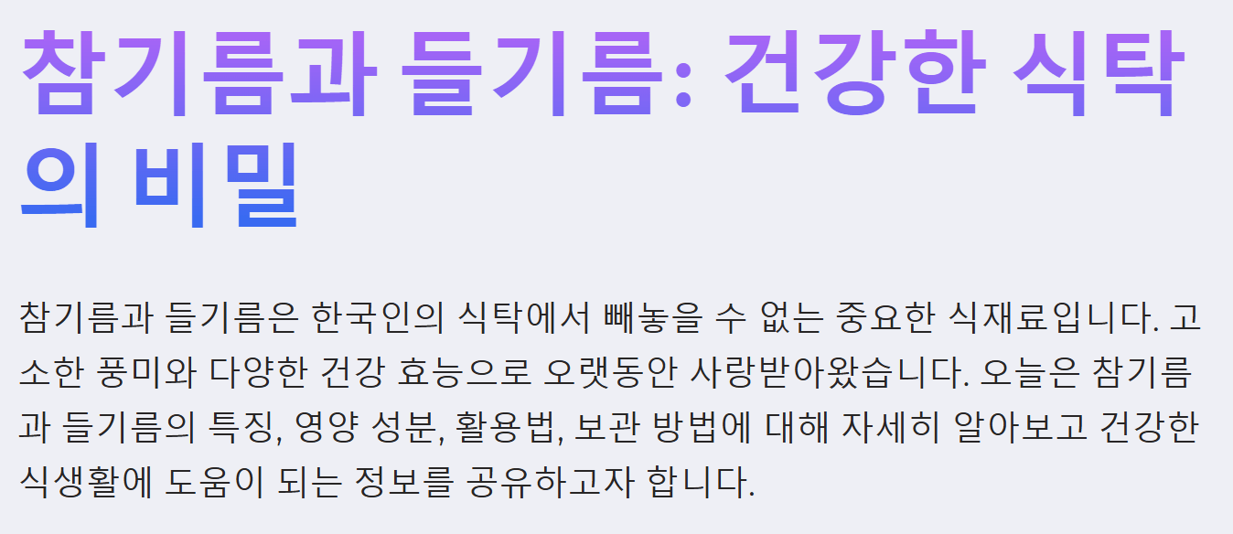 요약하면, 참기름과 들기름은 각각 고유의 영양 성분과 특징을 가지고 있으며, 이를 제대로 이해하고 활용한다면 건강한 식생활에 큰 도움이 될 것입니다. 각 기름의 특징을 고려하여 요리에 활용하고, 올바른 보관 방법을 통해 신선한 상태로 섭취하고 건강한 기름 섭취를 실천해보세요!