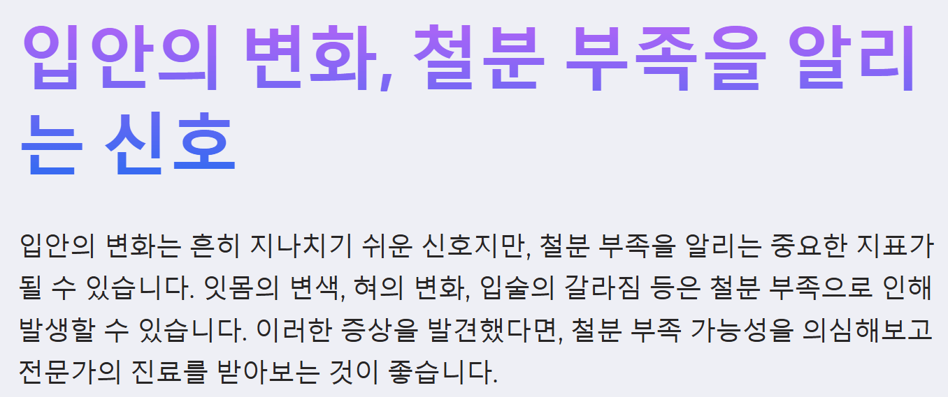 평소 건강에 자신 있었지만 최근 들어 입안에 이상한 변화가 느껴진다면 주목해야 합니다. 입안의 변화는 철분 부족을 가장 먼저 알려주는 조기 경고등이 될 수 있습니다. 오늘은 입안의 미세한 변화를 통해 철분 부족을 조기에 발견하고, 건강을 지키는 방법에 대해 자세히 알려드리겠습니다!