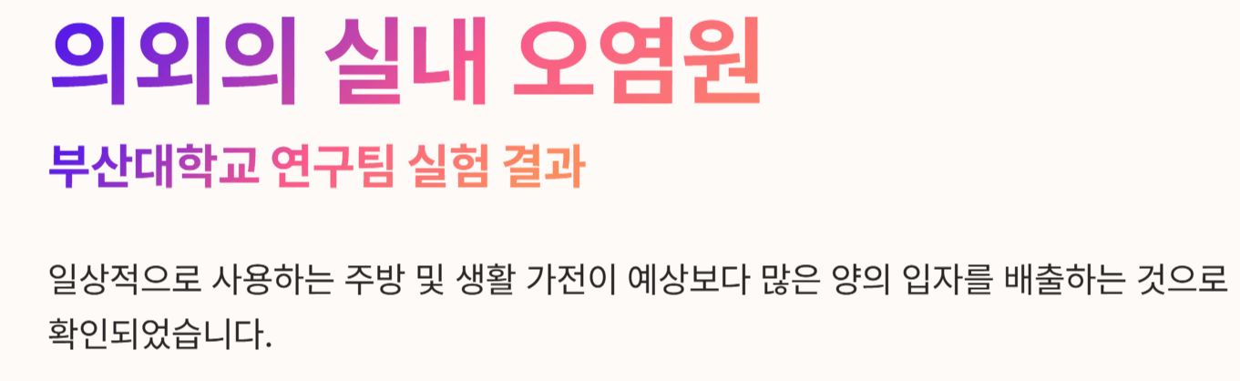 - 중금속 성분 검출: 배출된 입자 분석 결과 구리, 철, 알루미늄 등 가전 부품에서 유래된 금속 성분이 확인되어 세포 독성 유발 가능성이 제기되었습니다.