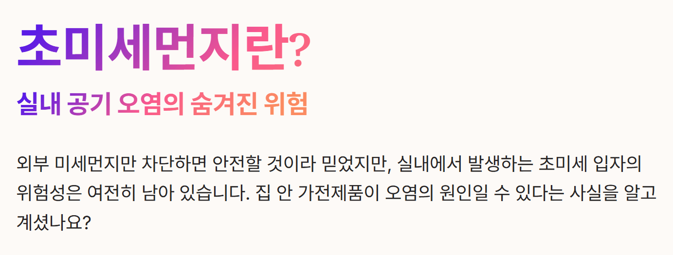 실내 공기 오염에 대한 걱정으로 공기청정기를 가동하면서도 정작 집 안 가전제품이 오염의 원인일 수 있다는 사실에 불안함을 느끼는 분들이 많습니다. 외부 미세먼지만 차단하면 안전할 것이라 믿었지만 실내에서 발생하는 초미세 입자의 위험성은 여전히 남아 있습니다. 오늘은 초미세먼지란 무엇인지, 초미세먼지 기준 및 유발하는 가전 제품에 대해 알아보겠습니다!