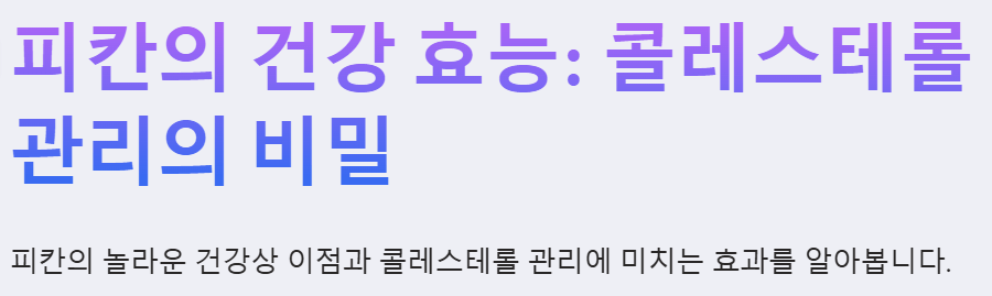 혹시 콜레스테롤 수치 때문에 걱정이신가요? 피칸은 맛과 영양을 동시에 잡은 최고의 간식으로, 콜레스테롤 수치 개선은 물론 전반적인 건강 증진에 도움을 줄 수 있습니다. 오늘은 콜레스테롤에 좋은 피칸의 효능, 피칸 하루 섭취량에 대해 알아보겠습니다!
