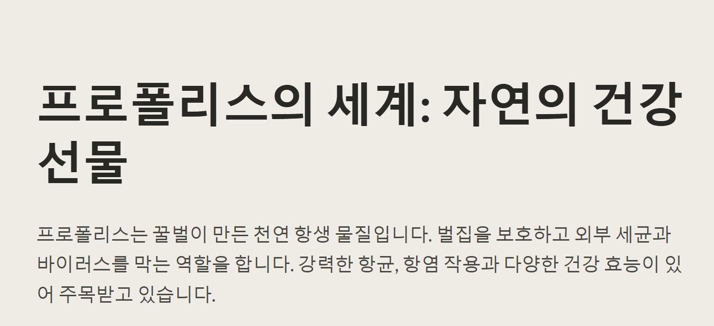 바쁜 현대 사회에 끊임없이 우리를 괴롭히는 건강 문제들이 있죠. 면역력 저하, 만성 피로, 각종 염증 등... 건강을 되찾고 싶은 마음은 간절하지만, 무엇을 어떻게 해야 할지 막막할 때가 많습니다. 오늘은 자연이 우리에게 선사한 귀한 선물, 프로폴리스에 대해 자세히 알아보고, 건강한 삶을 위한 특별한 선택이 될 수 있는 이유를 함께 살펴보겠습니다.