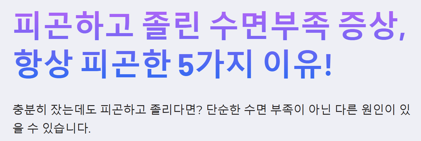 혹시 매일 아침, 아무리 오랜 시간 잠을 잤다고 생각해도 몸이 천근만근 무겁고 하루 종일 졸음이 쏟아지시나요? 이는 단순히 잠이 부족해서만 나타나는 증상이 아닐 수 있습니다. 이번에는 피곤하고 졸린 수면부족 증상과 항상 피곤한 5가지 이유에 대해 알아보겠습니다. 🔽 아래의 글을 통해 자세히 확인해보세요!