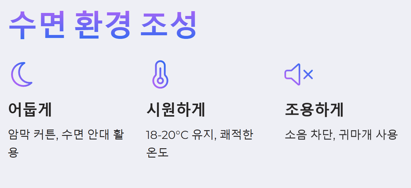 - 규칙적인 수면 시간: 매일 정해진 시간에 잠자리에 들고 일어나는 습관을 들이는 것이 중요합니다. 주말에도 평일과 비슷한 시간에 일어나 생체 리듬을 일정하게 유지하는 것이 좋습니다.