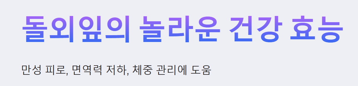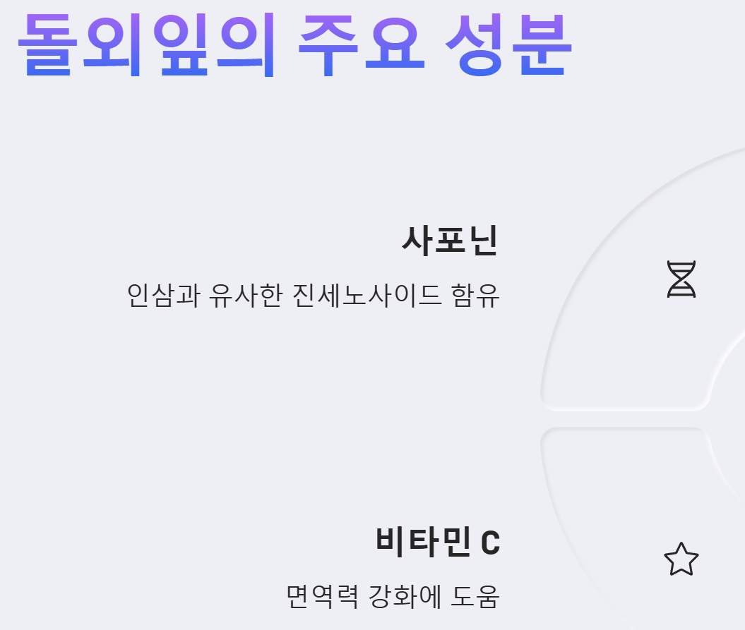 - 면역력 증진: 돌외잎에 풍부한 사포닌과 플라보노이드, 폴리페놀, 비타민C 등의 항산화 성분은 면역 세포의 기능을 활성화하고 체내 염증 반응을 완화하여 전반적인 면역력 향상에 도움을 줍니다.