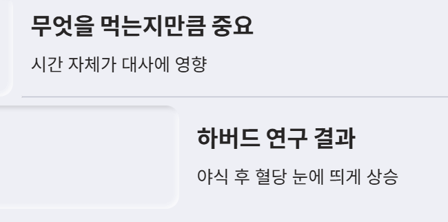 야식을 먹고 잠드는 시간을 늦추면 괜찮을 것이라는 생각, 과연 사실일까요? 최근 연구들은 식사 시간 자체가 혈당 조절 능력에 직접적인 영향을 미친다고 경고합니다. 즉, 언제 먹는지가 무엇을 먹는지 만큼이나 중요하다는 의미입니다. 하버드의대 부속 브리검여성병원 연구팀의 결과는 이를 명확히 보여줍니다.