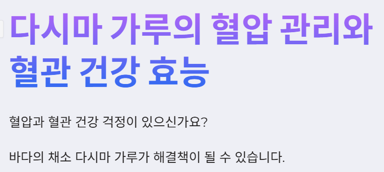 혹시 평소 혈압이나 혈관 건강에 대한 걱정을 하고 계신가요? 잦은 회식과 불규칙한 식습관, 스트레스 등으로 인해 혈관 건강에 적신호가 켜진 것은 아닌지 염려될 수 있습니다. 최근 연구 결과에 따르면 다시마는 혈압 관리와 혈관 건강에 도움이 되는 것은 물론, 장 건강에도 도움을 준다고 합니다. 오늘은 혈압과 혈관 건강에 긍정적인 영향을 미치는 다시마 가루의 다양한 효능에 대해 자세히 알아보겠습니다!