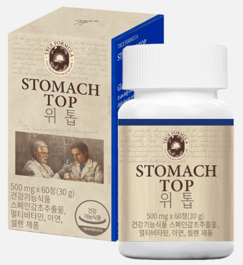 트루포뮬러 위톱은 스페인 감초 추출물 성분을 통해 위 점막을 보호하고 헬리코박터균의 증식을 억제해 위 건강에 도움을 주는 건강기능식품입니다. 또한 여러 비타민과 판토텐산을 추가로 함유하여 신진대사를 돕고 에너지를 생성하며 면역기능의 개선에 도움을 주는 제품입니다.